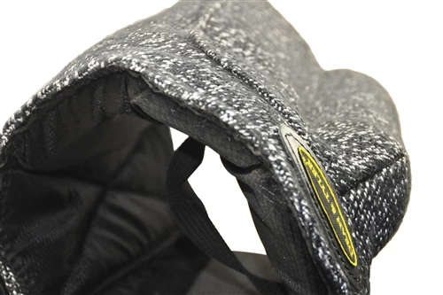 The French Linen or Jute is very durable and the stitching is reinforced in the bite area.